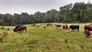 -. Posee 70 ha de praderas, que se manejan con rebaño de carne de 55-60 vacas